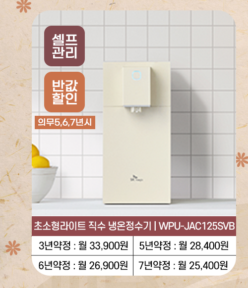 홈페이지 상담 및 렌탈 구매 필수 이름, 휴대폰번호, 주소 (우편번호, 상세주소) 렌탈 신청에 따른 고객 상담 및 렌탈구매 3개월